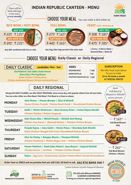 Another enterprise of famous Veda Restaurant in CP Delhi. Going far beyond this canteen work started from scratch - creating its logo to tagline aaj kya bana hai ? its branding with video jingle , eco friending packaging, extensive daily changing menu work to promotion.